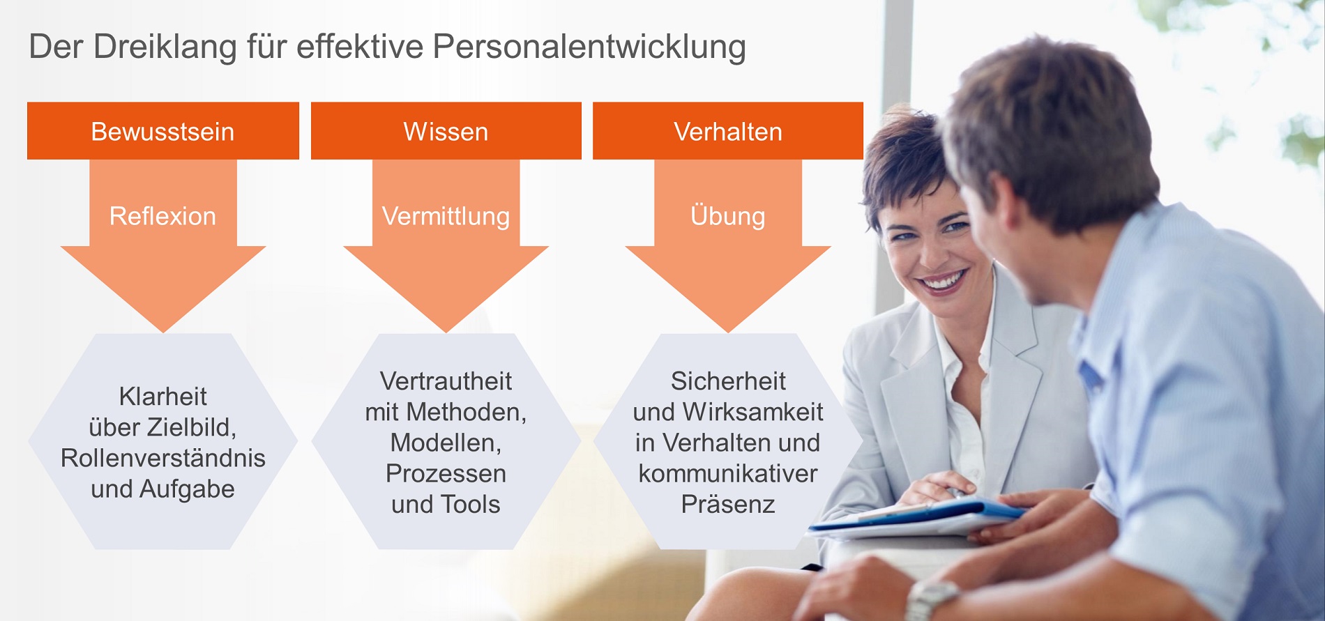 Überzeugungskraft und emotional gewinnende Führung leben durch persönliches Vorbild und eine hohe Übereinstimmung von Worten sowie Taten. Durch den Aufbau und die Kombination unserer Bausteine bieten wir für Führungskräfte ganzheitliche Qualifizierungskonzepte an, die die »Persönlichkeitsentwicklung« unterstützen und auf die Wirkdimensionen »Teamentwicklung« und »Mitarbeiterführung« ausgerichtet sind.